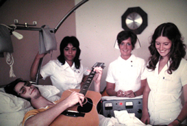 Gary awoke in a "Circle Bed" which was used to switch him from his stomach to his back, and then back again, alternating the positions every four hours to prevent pressure sores. He had to lay straight until his spine was healed. This routine was performed day and night for six weeks, during which Gary was he object of a huge outpouring of visitors and support and gifts — while he spent much of his free time watching the Senate Watergate hearings on TV.